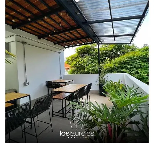 El apartamento ofrece vistas a la ciudad y consta de un cuarto de estar, una terraza y una cocina con climatizador. El Casa hotel Los Laureles dispone de cuarto de baño con toallas de baño. Además, hay un inodoro separado y ducha.